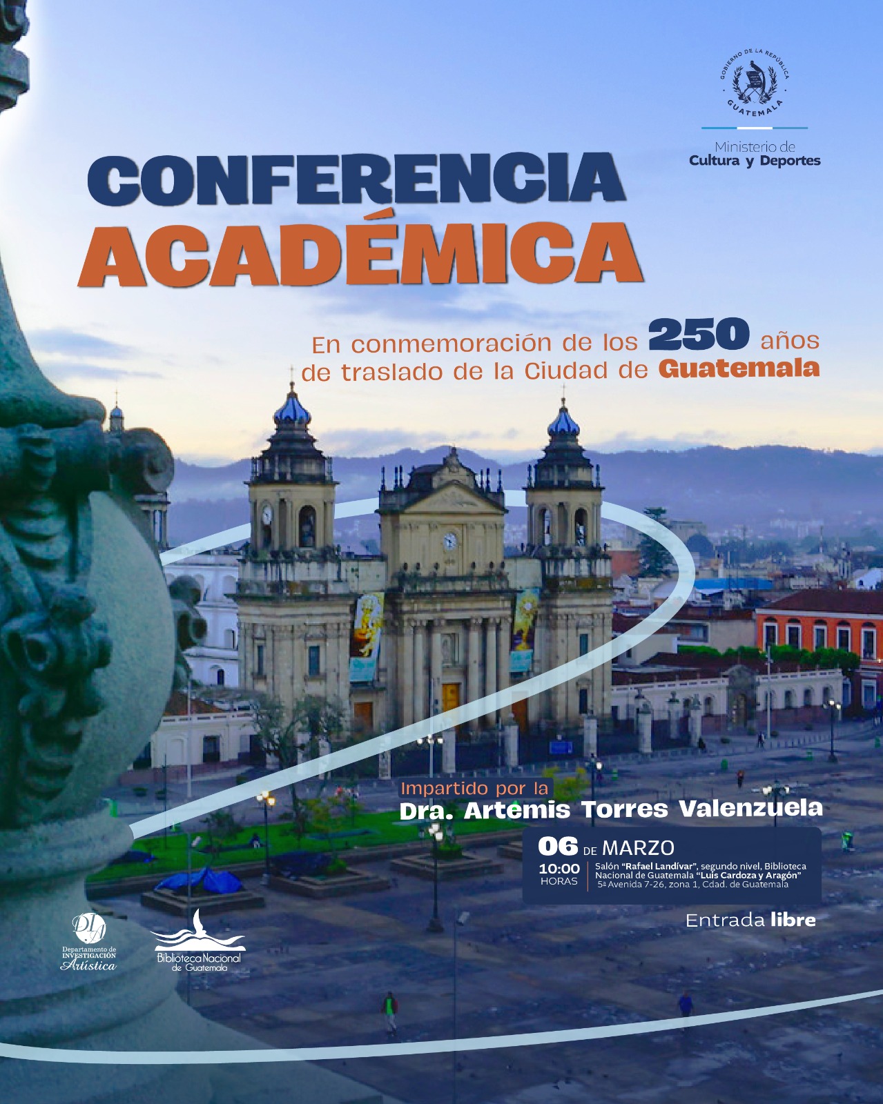 Acompáñanos a la conferencia académica en conmemoración de los 250 años del Traslado de la Ciudad de Guatemala.