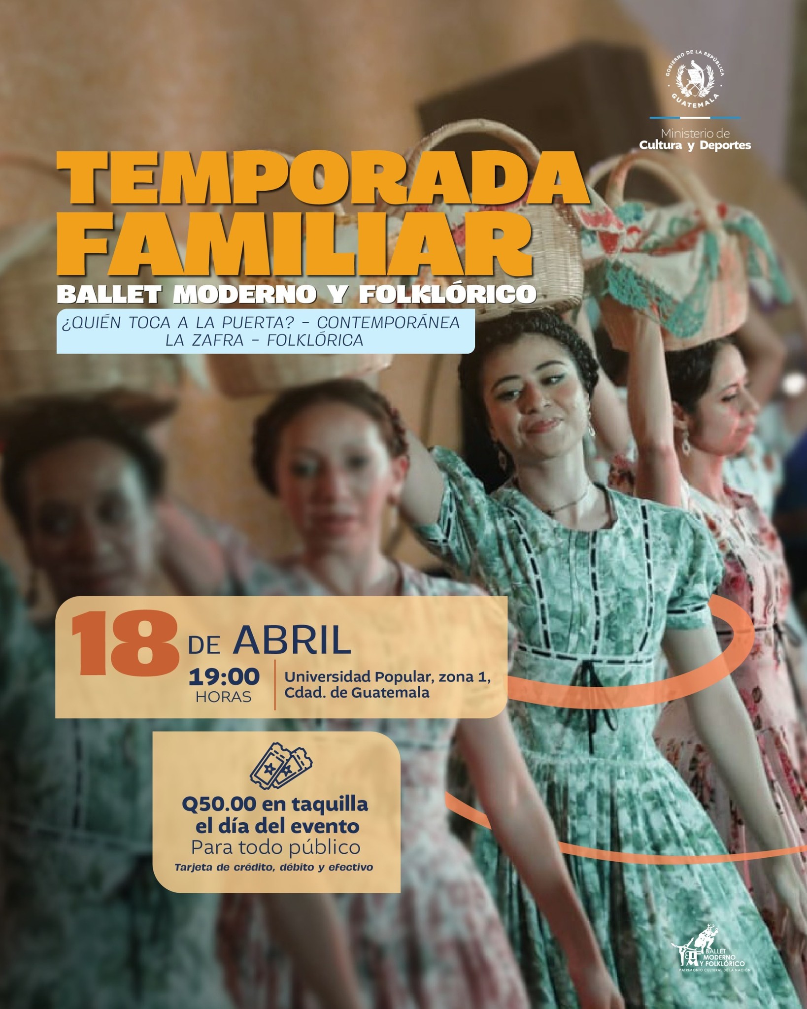 #Guatemala | 🩰✨ El Ballet Moderno y Folklórico Nacional de Guatemala te espera en su segunda función de la Temporada Familiar 2026. Este sábado disfruta de la danza contemporánea y folklórica con las puestas en escena: ¿Quién toca a la puerta? y La Zafra.