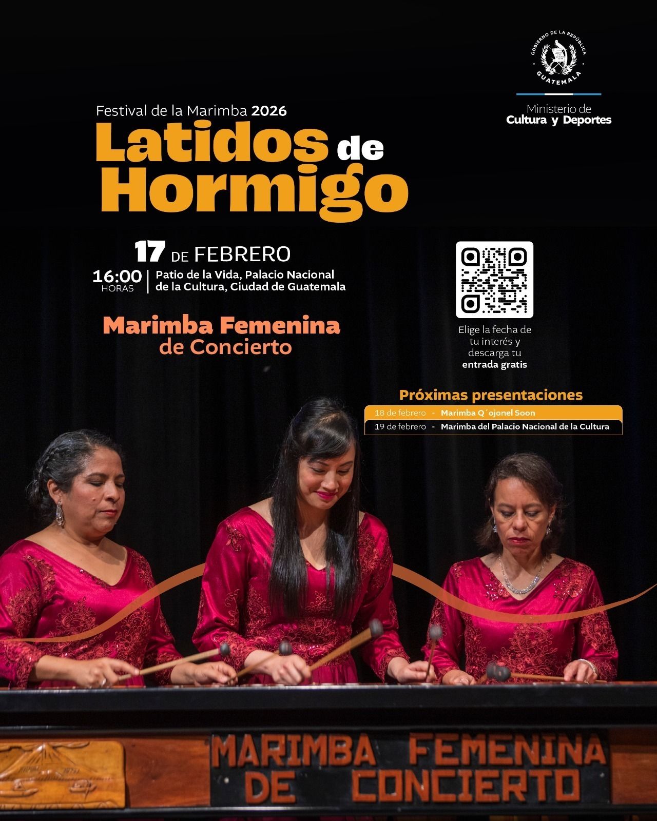 La Marimba Femenina de Concierto Ixoqib’ Ajq’ Ojomab’ te espera mañana para compartir un repertorio que celebra a nuestro instrumento nacional en el Festival de la Marimba 2026, “Latidos de Hormigo”.