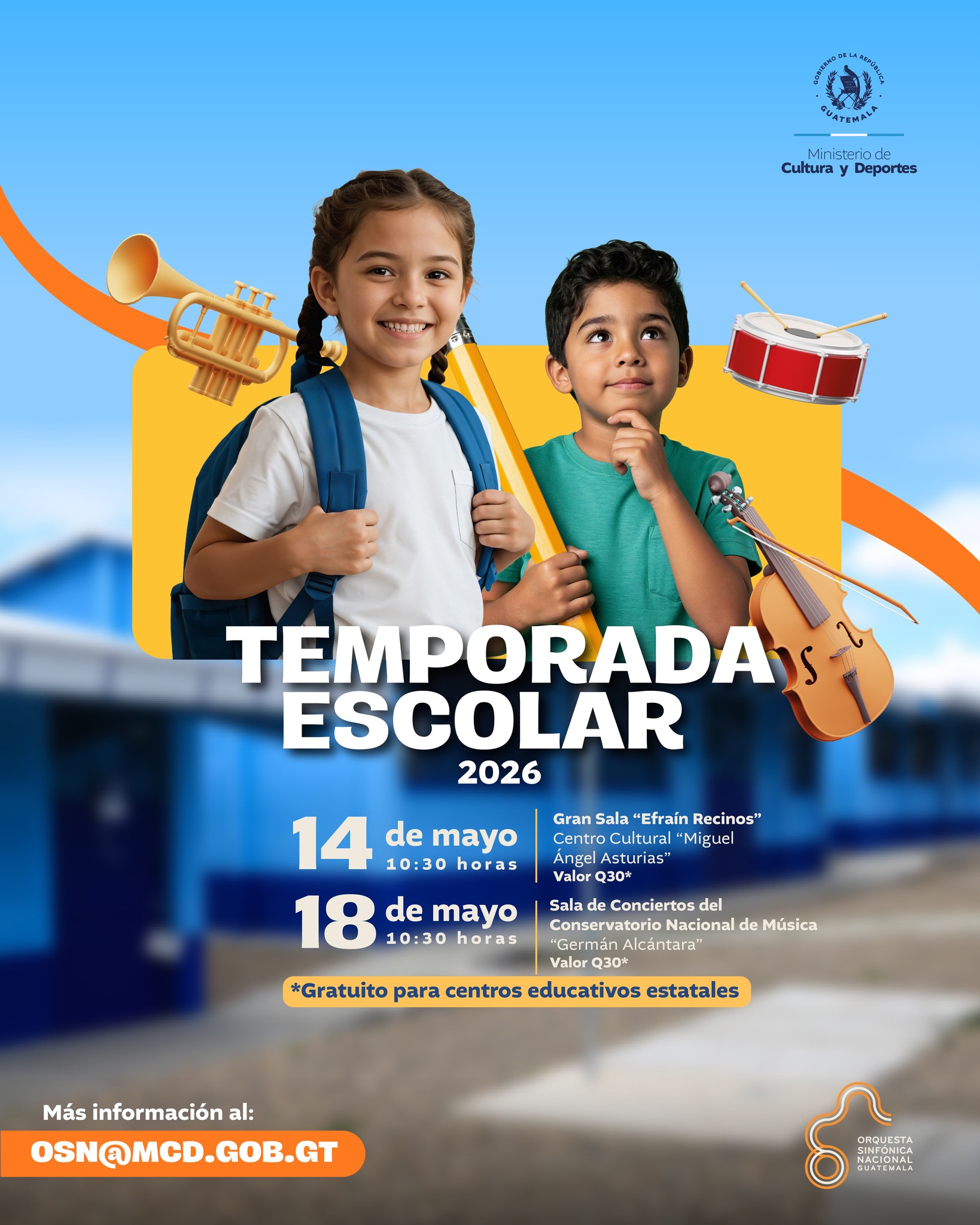 La Orquesta Sinfónica Nacional de Guatemala invita a todas las instituciones educativas a vivir una experiencia musical única, diseñada especialmente para estudiantes. 🎻🎺🥁