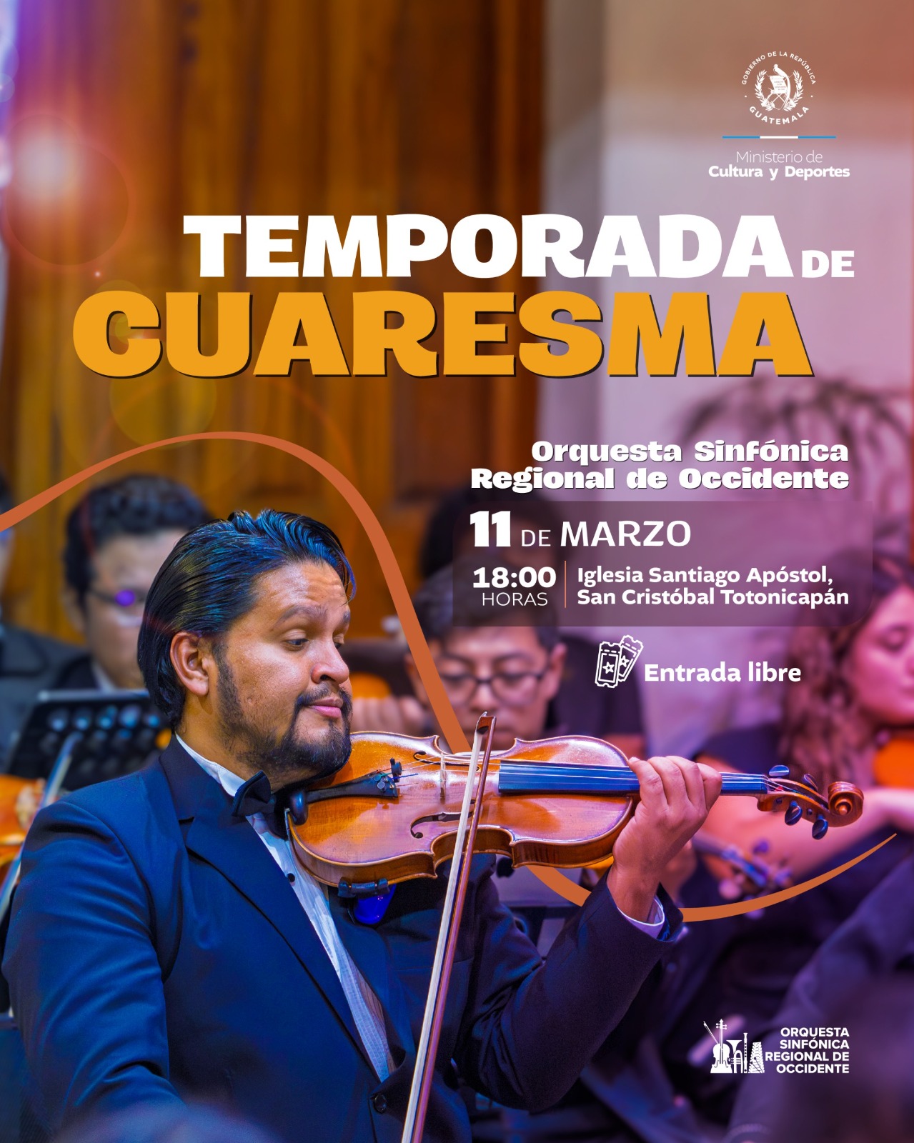 #Totonicapán | 🪻🎶🎻 La Orquesta Sinfónica Regional de Occidente continúa con conciertos de la Temporada de Cuaresma.