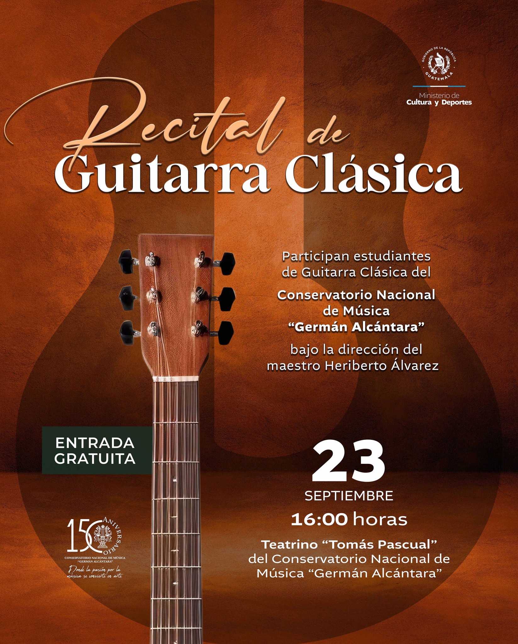 El Conservatorio Nacional de Música «Germán Alcántara» te invita a disfrutar de un recital de guitarra clásica, bajo la dirección del maestro Heriberto Álvarez y sus talentosos estudiantes.