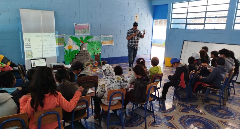 La actividad contó con la participación de 18 estudiantes y dos profesores de la Escuela Oficial Rural Mixta, cantón Nueva Alianza. El objetivo fue explicar y aportar a la comprensión del significado cultural y espiritual de los colores del maíz en la cosmovisión maya.