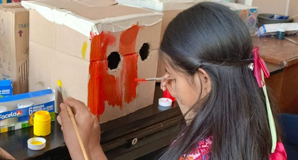 La actividad contó con la participación de niños y niñas de la comunidad, quienes formaron parte de un proceso formativo orientado al rescate de los saberes ancestrales vinculados a la elaboración de máscaras tradicionales utilizadas en la danza de los Micos, fortaleciendo el aprendizaje sobre técnicas artesanales, materiales y significados simbólicos que integran esta importante expresión cultural.