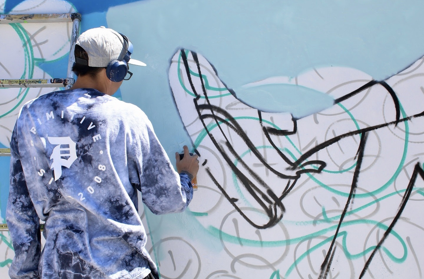Técnica graffiti , con temática de personajes animados y realización de letras orgánicas.