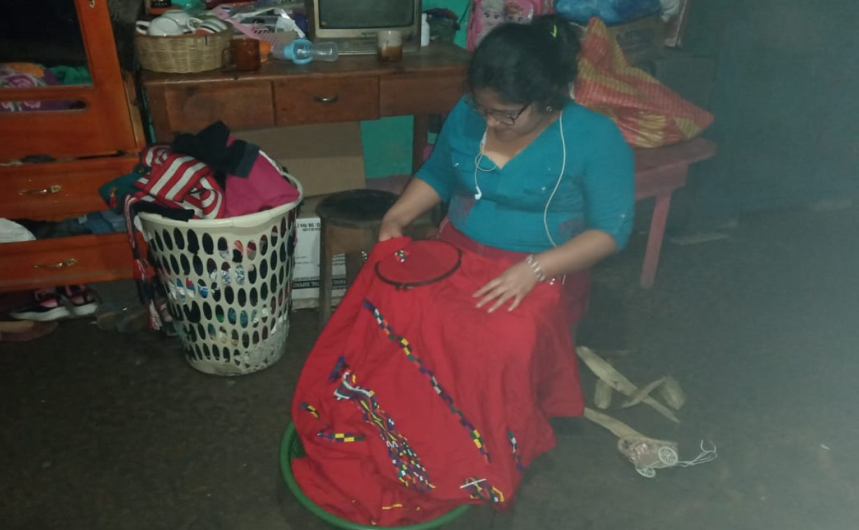 A través de su labor, Rosalina no solo preserva una tradición cultural, sino que también apoya a su familia, ayudando a sus dos hijos a costear sus estudios y cubrir los gastos del hogar. En su humilde casa, trabaja con entusiasmo y dedicación, terminando cada proyecto con el mayor esmero para recibir su pago, lo que le permite seguir adelante y continuar brindando un servicio que refleja su amor por su cultura y su familia.