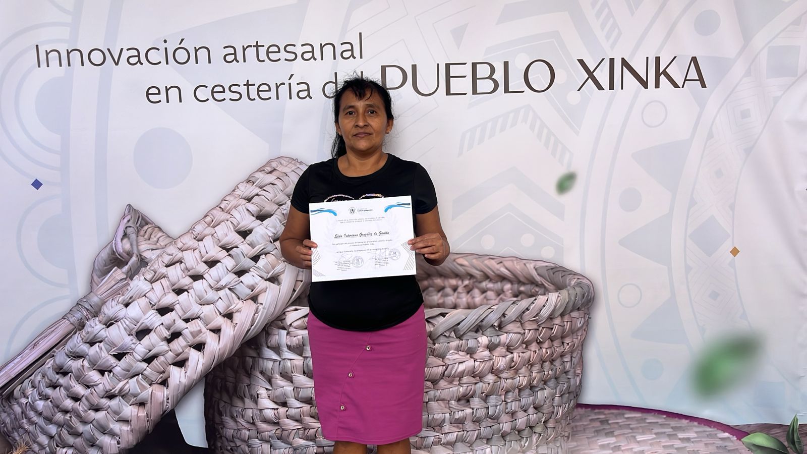Elda Interiano González, artesana perteneciente al pueblo Xinka, se dedica de forma íntegra a la elaboración de productos artesanales a base de tule. Con recursos propios ha logrado sostener y fortalecer su actividad productiva, convirtiendo este oficio en su principal medio de vida.