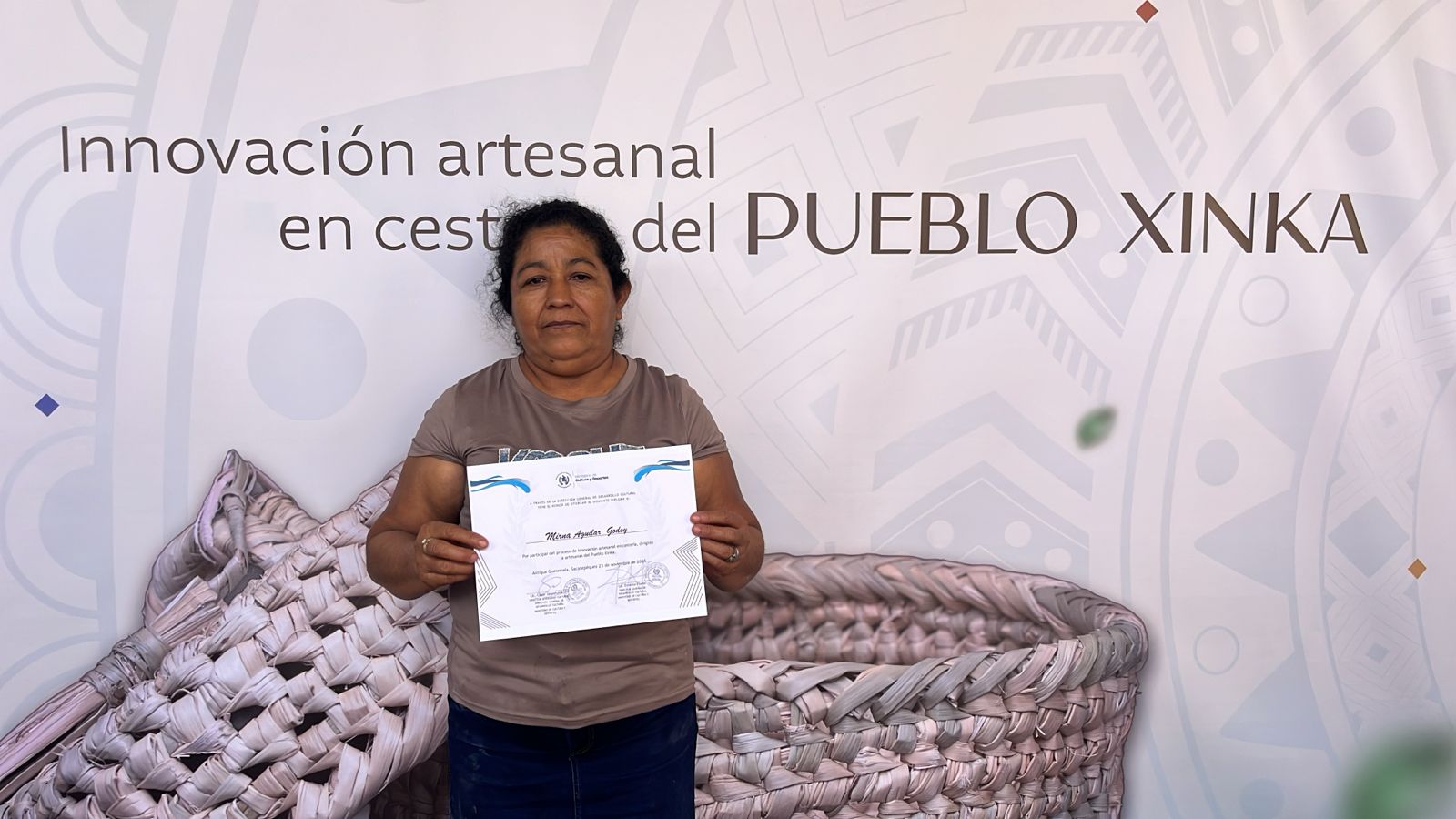 Mirna Aguilar, artesana perteneciente al pueblo Xinka, se dedica plenamente