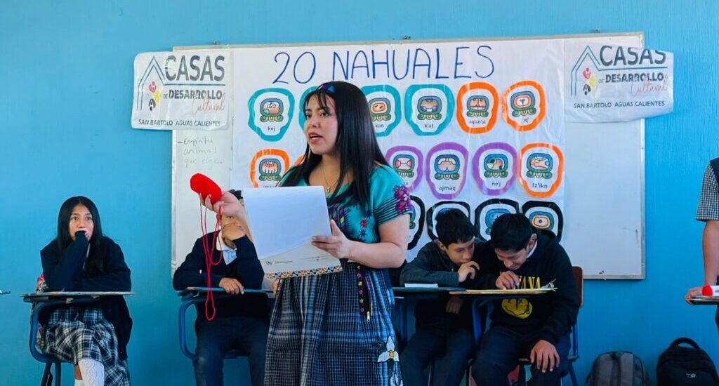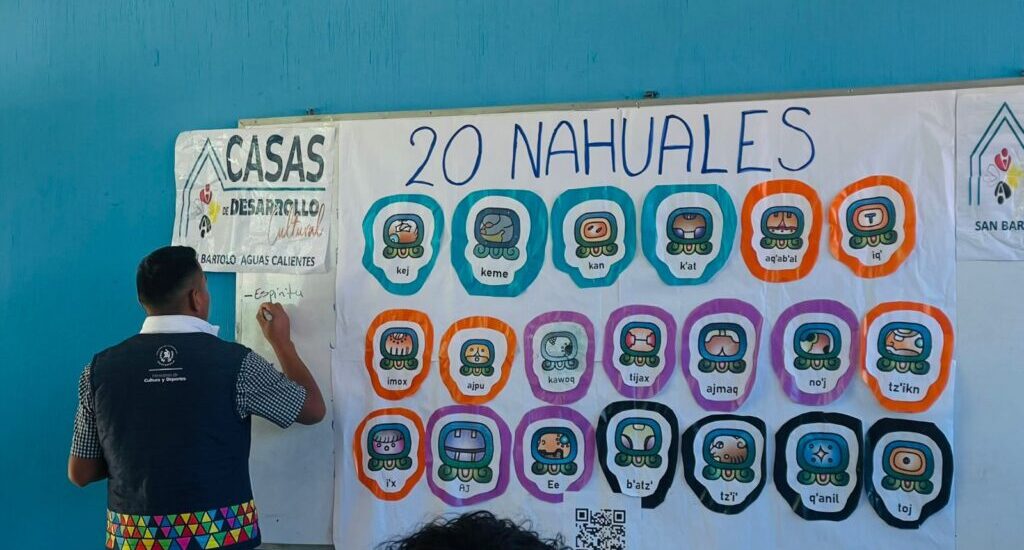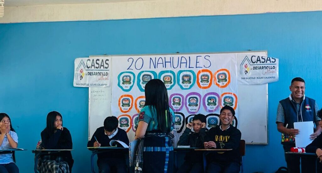 La Casa de Desarrollo Cultural del municipio de San Bartolo Aguas Calientes, Totonicapán, llevó a cabo el taller “Importancia de los 20 nahuales y su significado”, dirigido a 30 estudiantes de tercero básico del Instituto Básico por Cooperativa de la localidad. La actividad tuvo como objetivo acercar a las y los jóvenes a la cosmovisión maya y fortalecer el conocimiento de su identidad cultural a través del estudio de los nahuales.