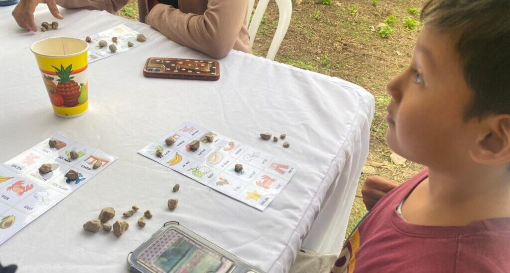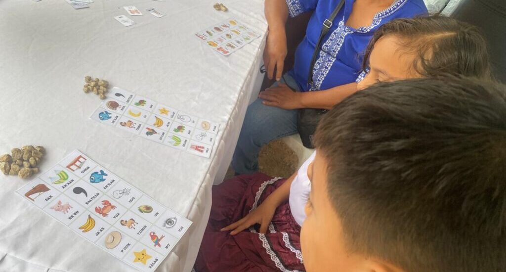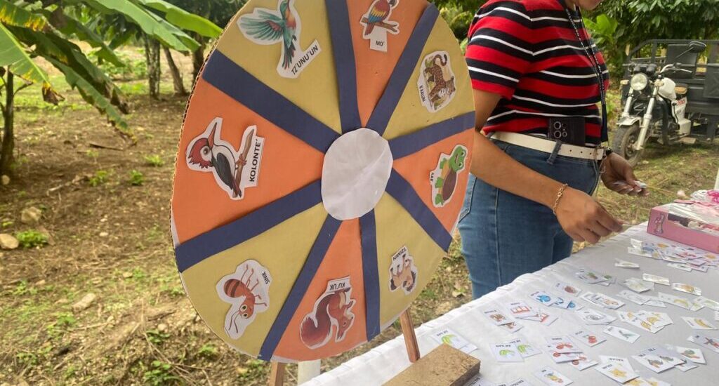 Para facilitar la enseñanza intergeneracional, la Casa de Desarrollo Cultural implementó estrategias pedagógicas innovadoras basadas en juegos lúdicos. Jugaron lotería, la memoria y la ruleta, diseñadas específicamente con vocabulario en Mopán.