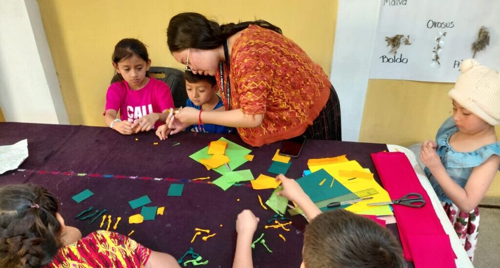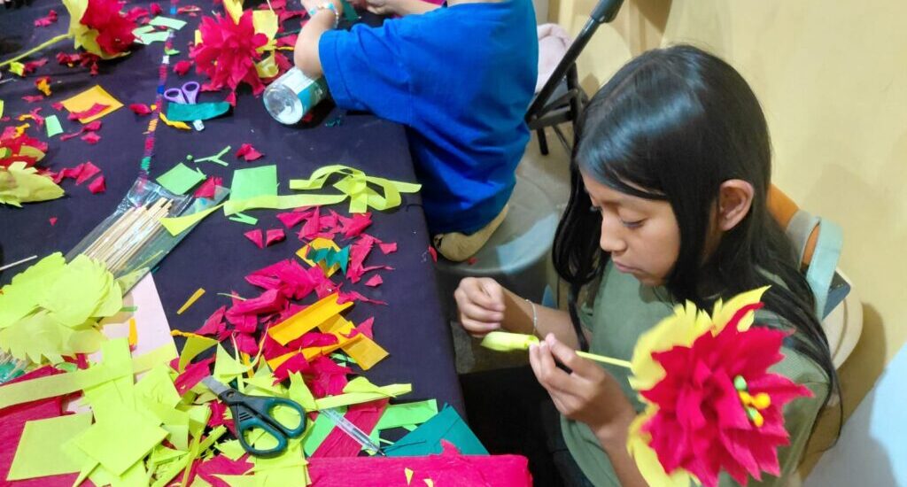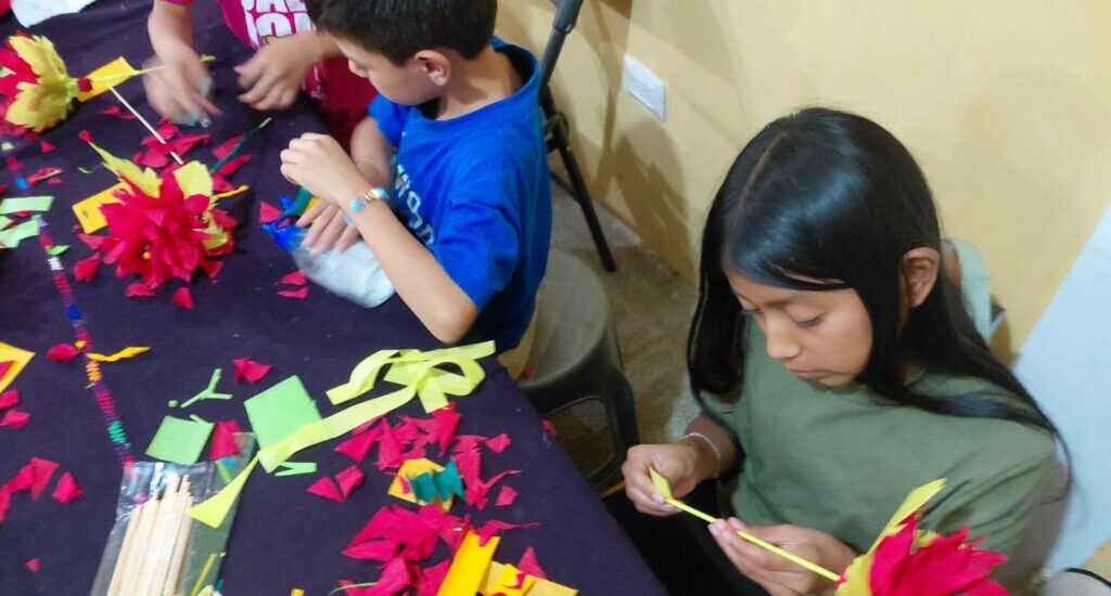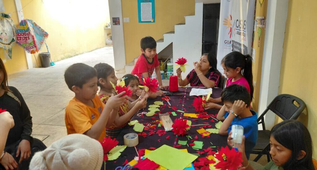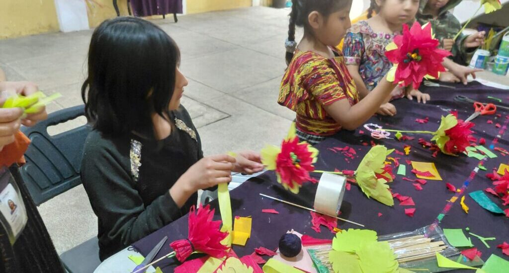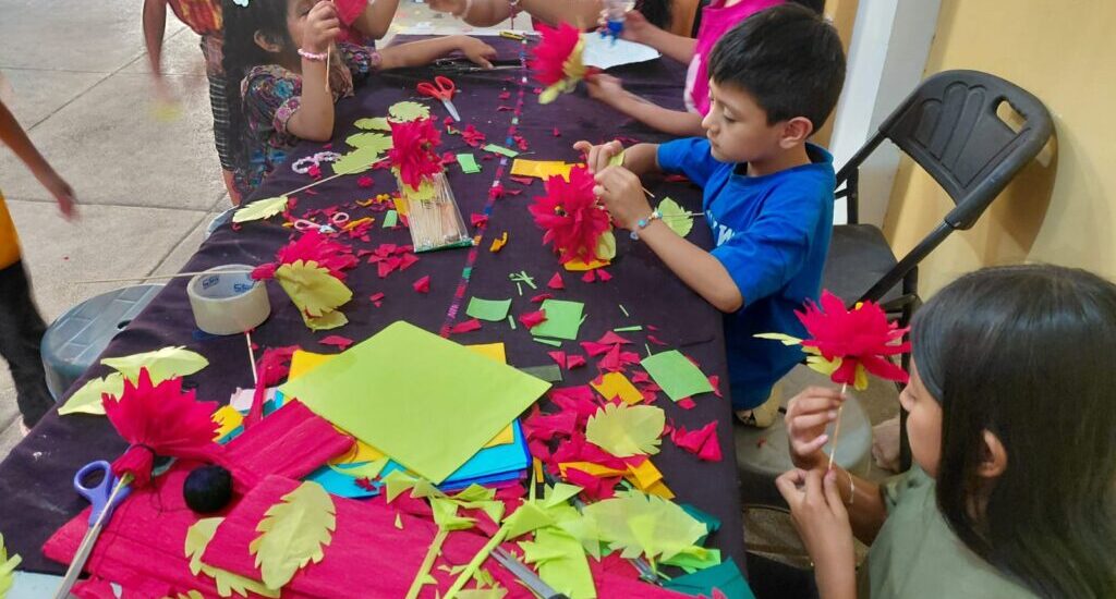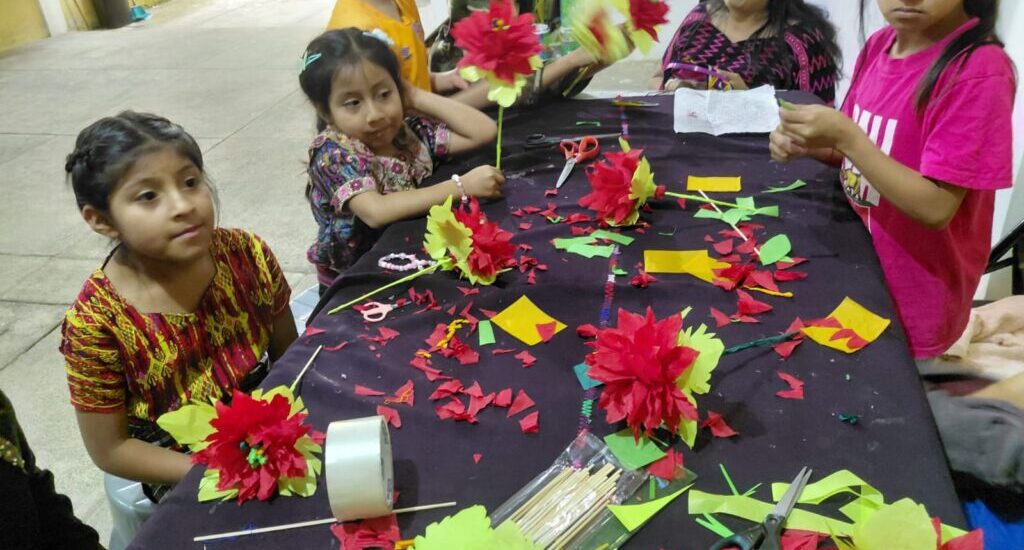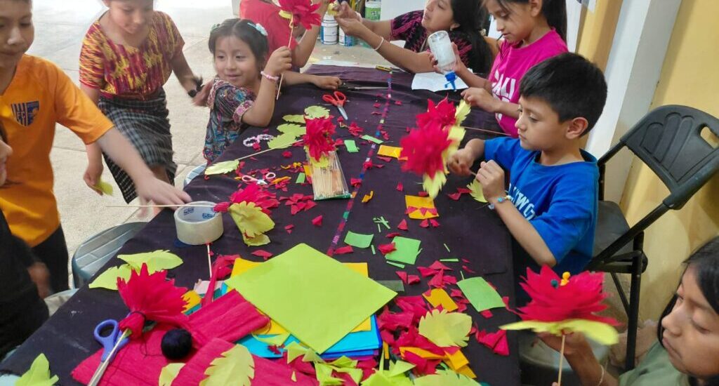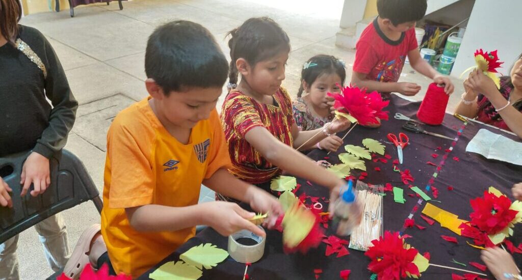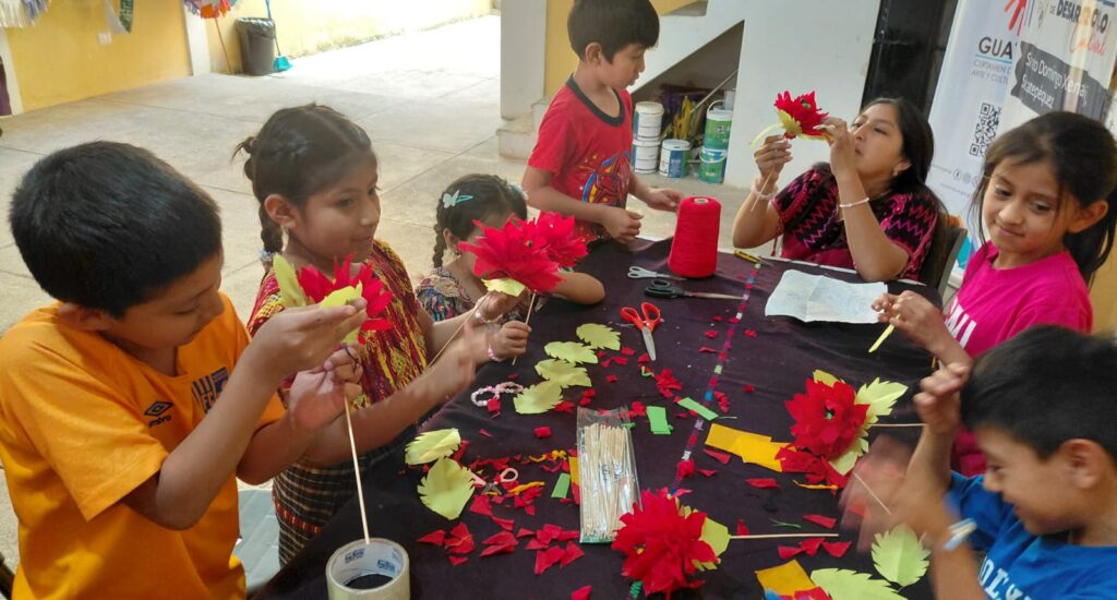 Con el acompañamiento de los instructores, los niños y jóvenes comprendieron el valor simbólico de la flor de pascua, asociada a la unidad familiar, la esperanza y la espiritualidad que caracterizan las celebraciones de diciembre en las comunidades guatemaltecas.