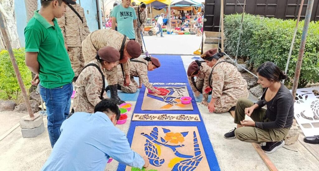 Durante la jornada, los participantes no solo aprendieron sobre el significado y la técnica de las alfombras tradicionales, sino que también vivieron el proceso de creación desde sus bases: tiñeron y prepararon el aserrín, aplicaron color y dieron vida a cada diseño. Esta experiencia práctica y creativa resultó profundamente significativa, ya que promovió el trabajo en equipo, el interés por las expresiones artísticas tradicionales y el desarrollo de la creatividad.