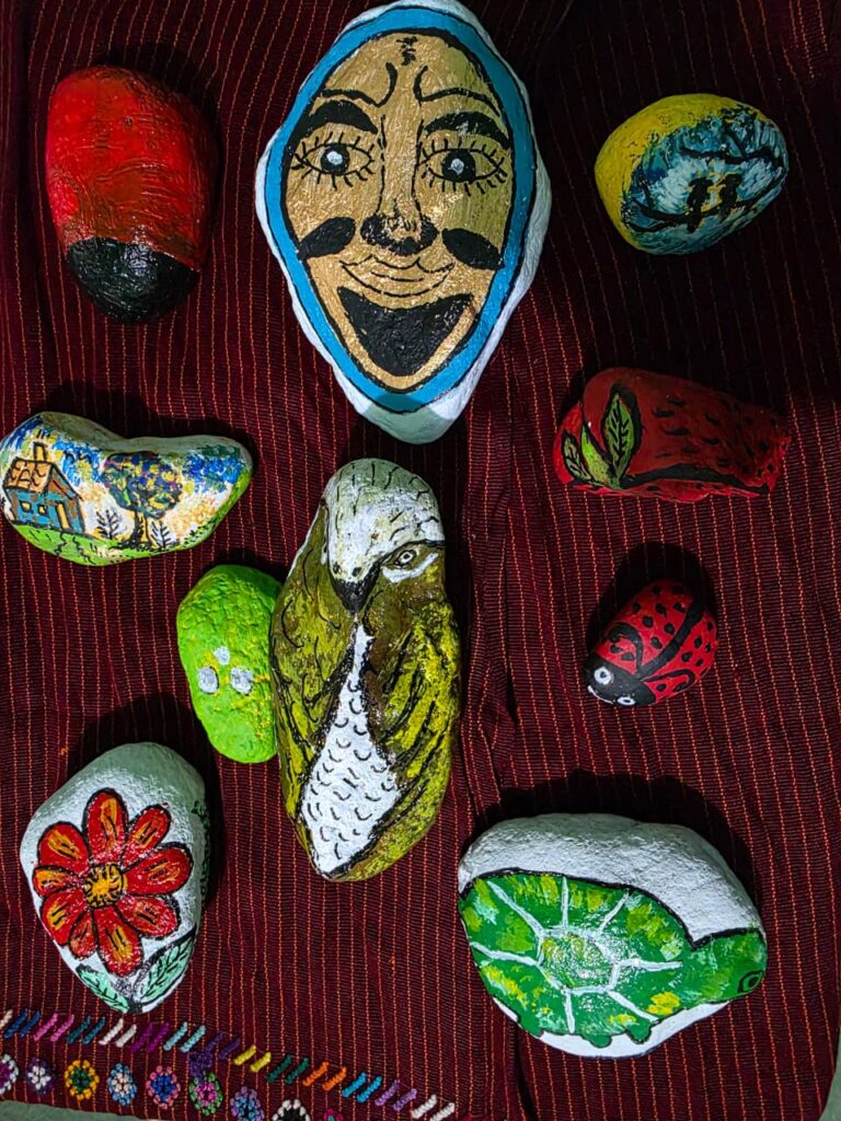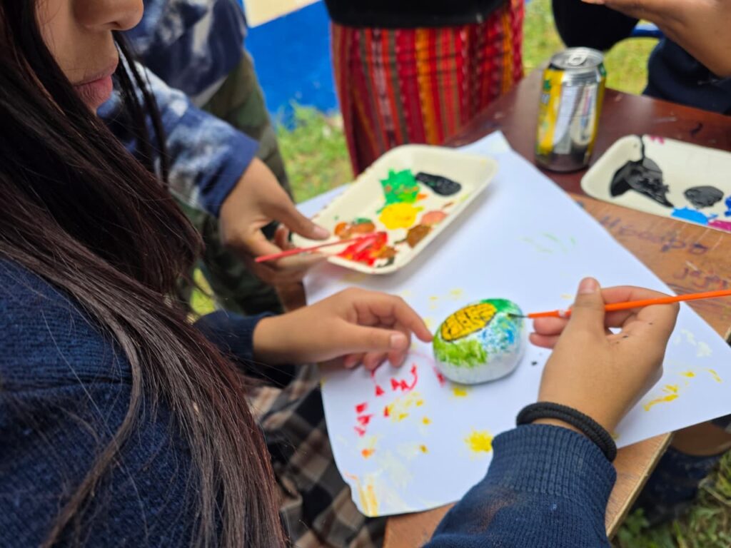 La actividad tuvo como objetivo promover espacios de convivencia, intercambio de conocimientos y fortalecimiento de la identidad cultural, utilizando el arte como medio de expresión. Durante el taller, las y los participantes trabajaron procesos de dibujo y pintura con técnica acrílica, plasmando en piedras diversos elementos de la naturaleza.