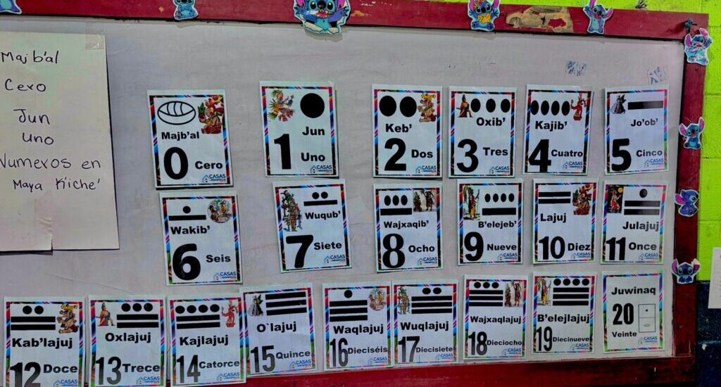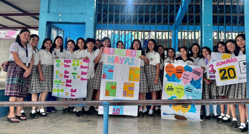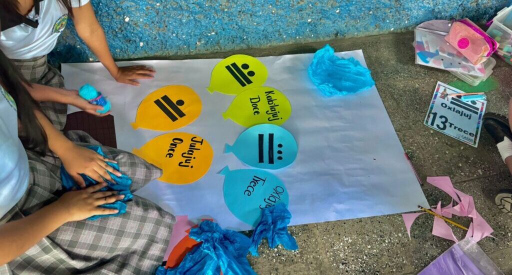 Estudiantes del Instituto Diversificado por Cooperativa Educación por la Paz y Desarrollo Comunitario (INSODI), en el municipio de San Pablo Jocopilas, departamento de Suchitepéquez, participaron en el taller «Aprendo los números del 0 al 20 en idioma maya K’iche’».